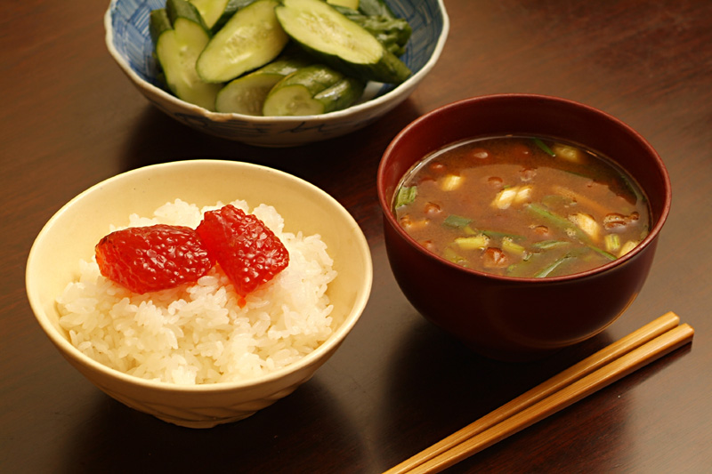 すじこ、ぬか漬け、なめこの赤だし