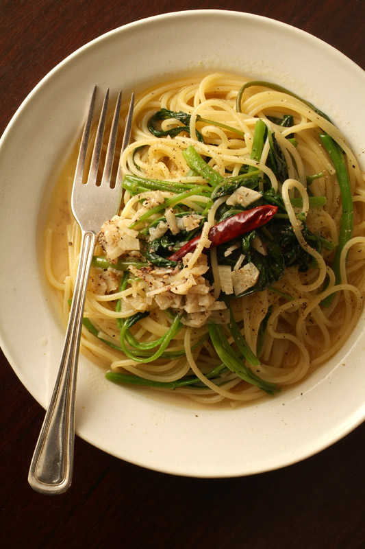 空芯菜とアンチョビのスパゲティー